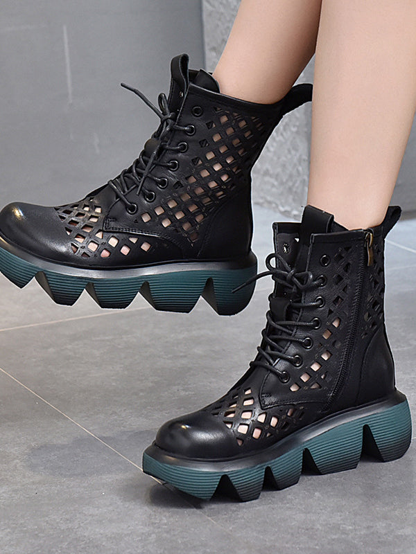 Hollow Thick Bottom Lace Up Round Toe Hole Cool Boots