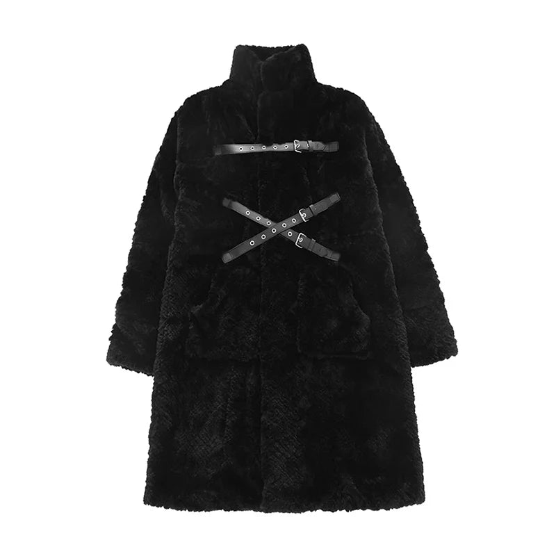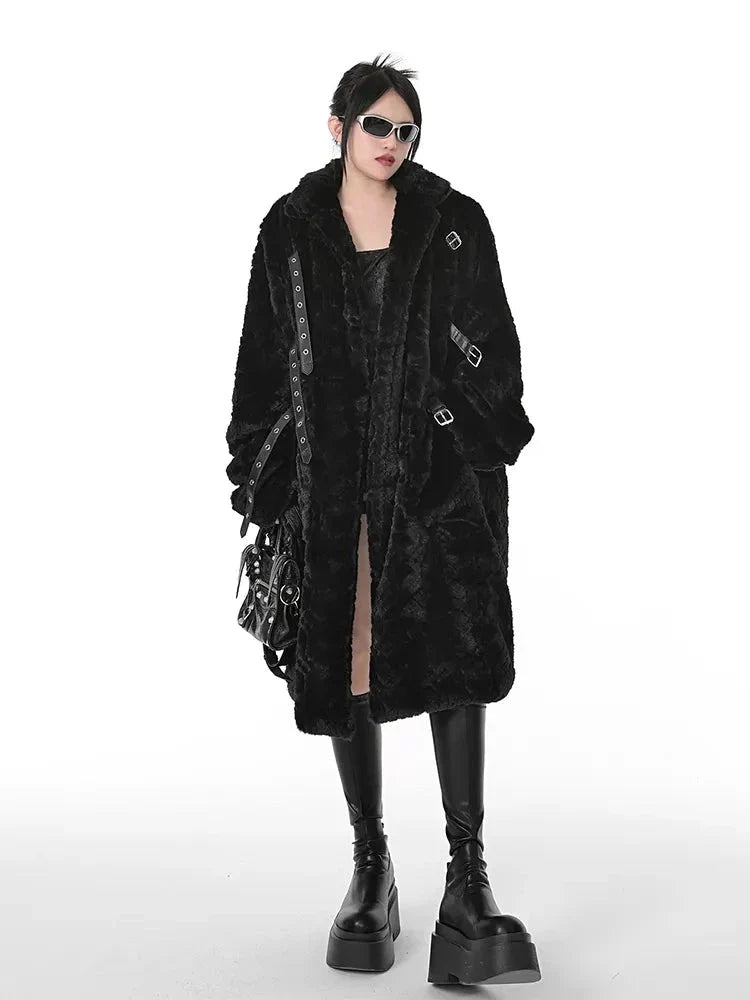 This winter. stay warm and stylish with our Punk Style Long Black Faux Fur Coat for women. Its punk style design adds edge to any outfit. while the faux fur keeps you cozy. Made from high-quality materials. this coat is a must-have for any fashionable woman's wardrobe.