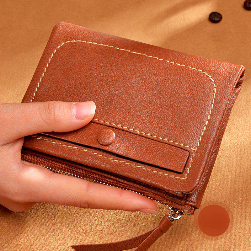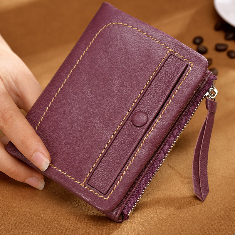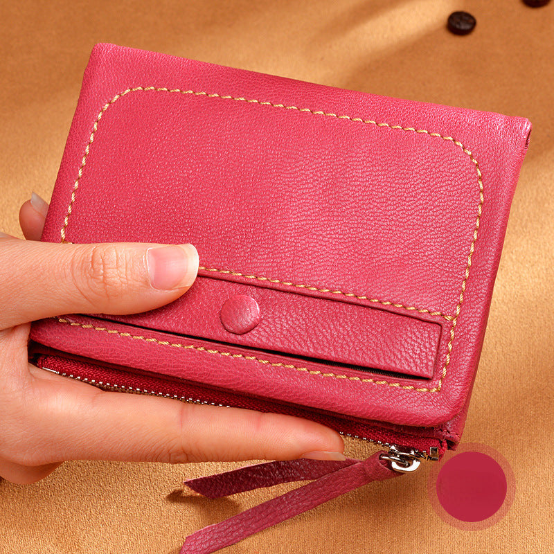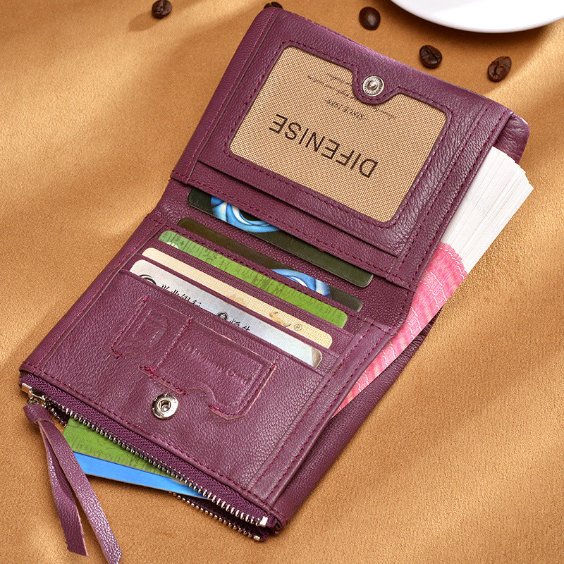 Women's small bifold leather wallets incluses one bill compartments. 3 card slots plus a secure zippered pocket. small and cute leather purses.