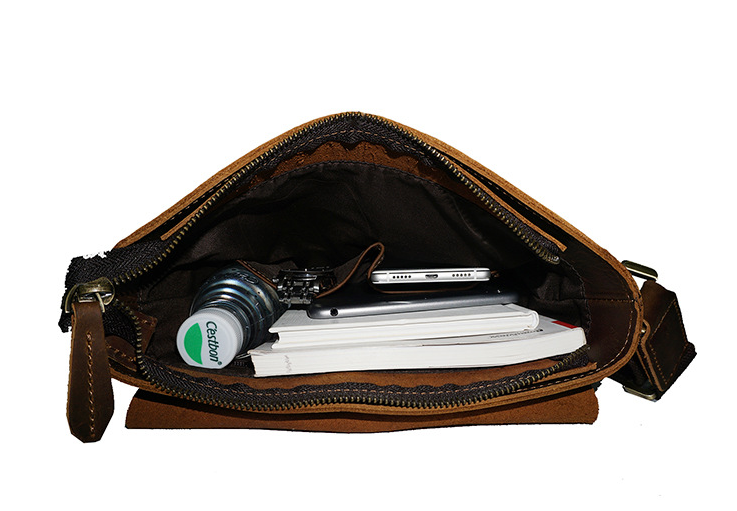 This retro leather bag is one of our most popular bags for men. the soft and durable leather carry-all features a large main compartment with extra pockets for organized carrying while on the go. Comes with secure buckle closure flap.
