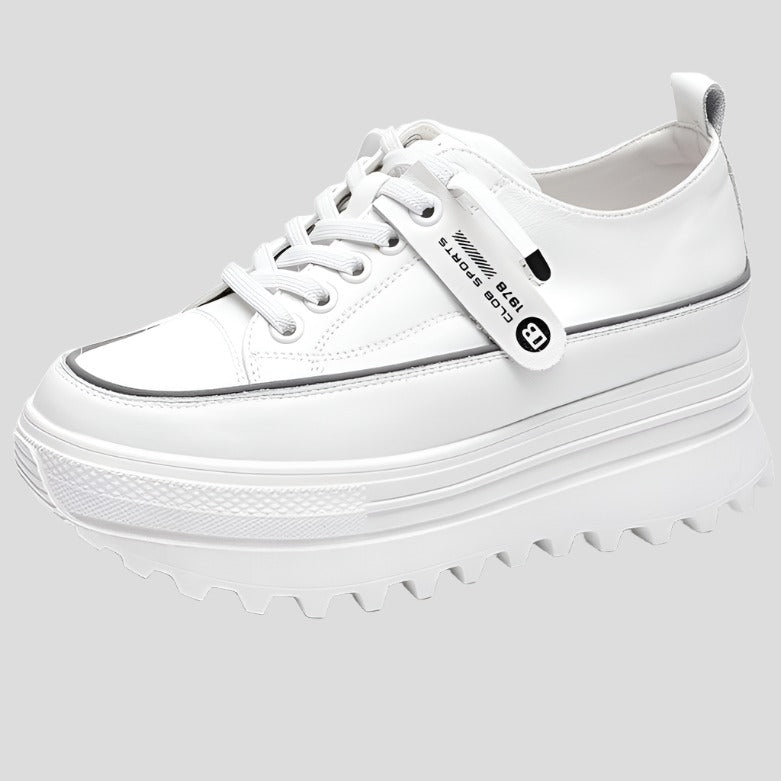True Deals Club presents the epitome of luxury and style with our 5.5cm Genuine Leather Women's Platform Leather Pump Sneakers. Crafted from premium leather. these sneakers offer unrivaled comfort and sophistication. With their round toe and platform sole. they effortlessly elevate any outfit. Fits smaller than usual. Please check this store's sizing info