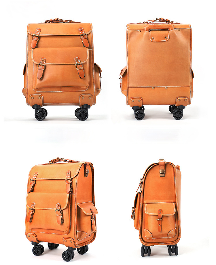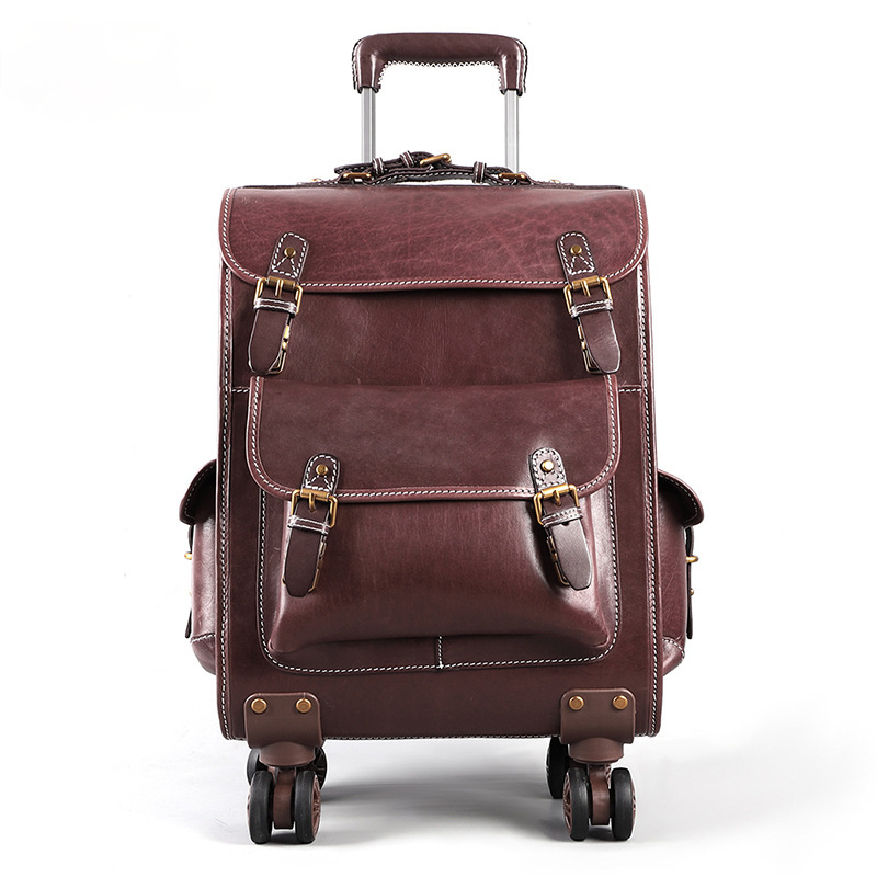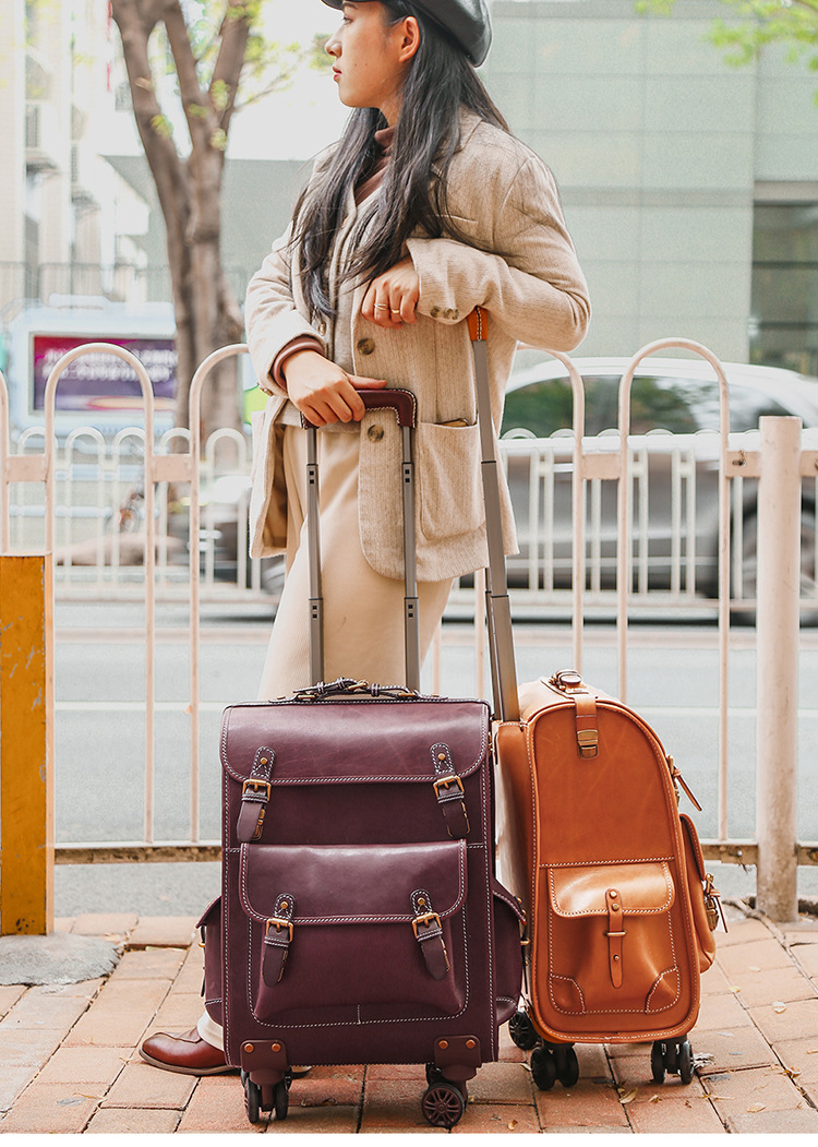 The dulex retro leather trolley case is made of premium cowhide leather. designed with the organised traveller in mind. this piggy bag is equipped with one outside pocket and two sidede pocket. Available in 2 colors. brown and dark red. The pilot trolley case would be your best companion when traveling.
