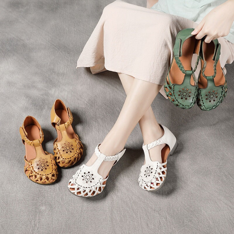 Woven Leather Upper . T strap Design. Picked Cow Leather Soft.Comfortable And Stand Wear And Tear.With 100% Genuine Leather Lining and Insole. Soft. Breathable and Hygroscopic. The Rubber Sole Is High Elastic. Soft. Non Slip And Wear-Resistant.Each Shoes Fixed by Experienced Craftsman.