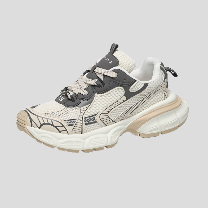 Conquer the streets in style with our White Chunky Sneakers! Featuring a 5cm heel and luxurious leather material. these shoes offer both height and comfort. Take bold steps and make a statement with these trendy sneakers.