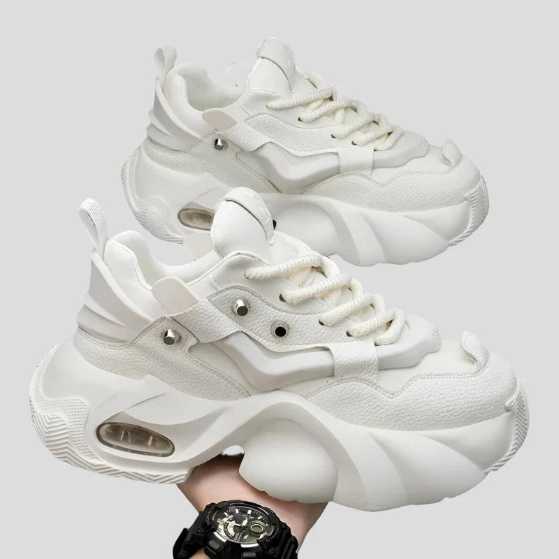 Step up your casual style with the Casual Chunky Sports White Platform Sneakers for Men. Crafted from synthetic material. these basic casual shoes feature a solid pattern and a lace-up closure for a secure fit. Perfect for spring and autumn. they boast a TPR insole and rubber outsole. providing comfort and durability with every step. Ideal for adults. these sneakers (Model Number: GS102) combine functionality with a trendy white platform design. Elevate your footwear collection with the Casual Chunky Sports White Platform Sneakers. designed for both style and comfort.